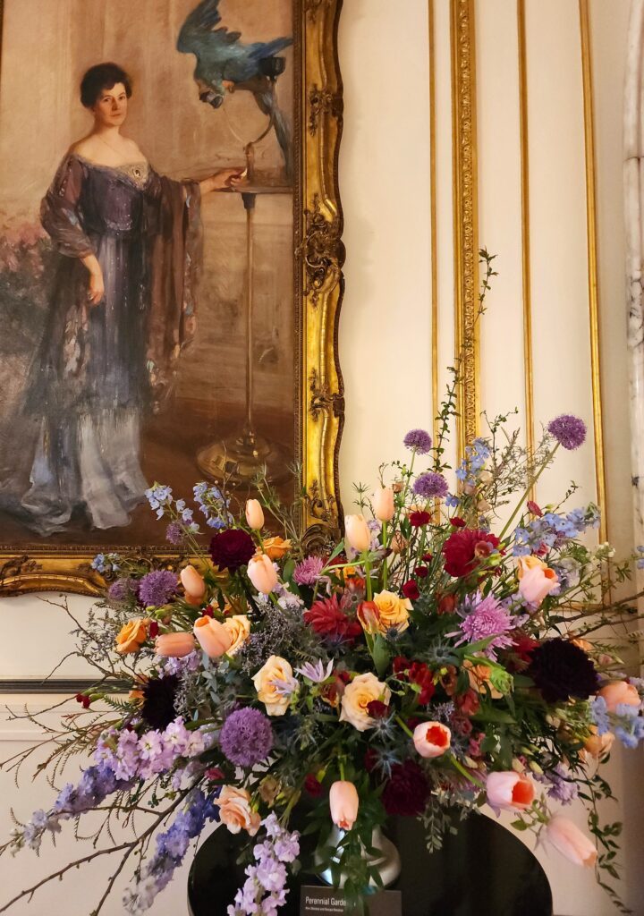One of many springtime events in Washington DC is the annual Art in Bloom event at The Lars Anderson House. One of many historic mansions and museums in the area, it has the unique opportunity to showcase local florists’ magical interpretations of various artworks, furniture, and architectural details, in the form of colorful floral (with a bit of fruit here and there), nature inspired fresh arrangements. My daughter and I were fortunate to get tickets and wander the mansion at our own pace, taking pictures and admiring all those typical mansion details – lots of gold detail, expansive collection of art and decor, and amazing architecture. The colorful arrangements are staged throughout each next to its inspiration, be it a piece of art work on the wall, antique china, a piano, an historic costume, or an impressive tile floor. Such a whimsical, creative way to bring to life objects of old, in a fresh, in the moment interpretation.